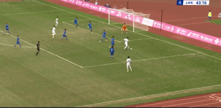 43’刘诚宇三秒区内小角度抽射攻门,皮球被守门员惊险扑出