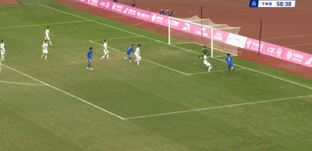 58’何炳壮三秒区内助攻,路俊伟抽取攻门,皮球高于横梁飞出看台