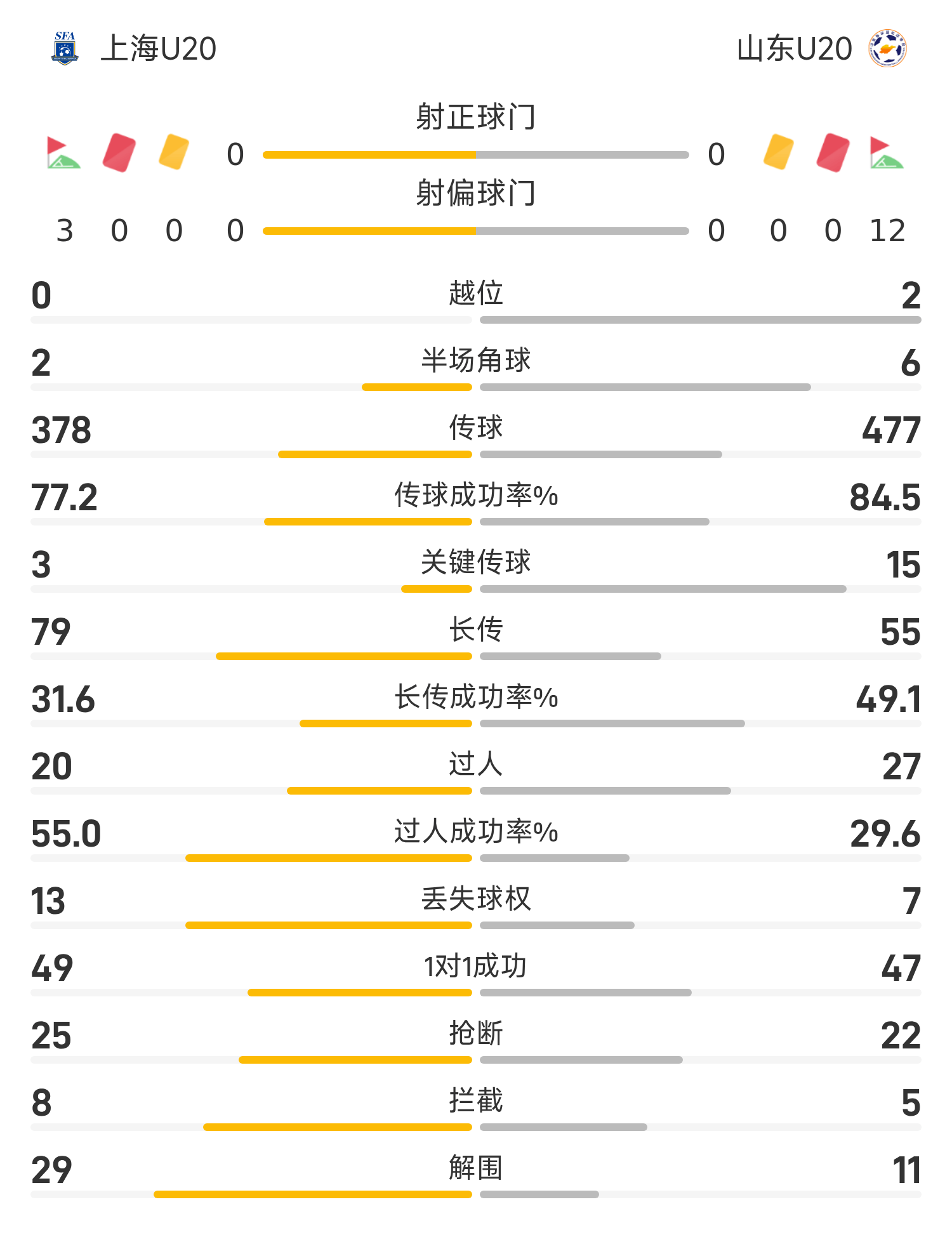 山东U20首发阵容:1-刘骐玮、16-王天佑、3-齐千程、2-何炳壮、8-陈泽仕(66’6-付雨轩)、10-依木兰(75’28-宫睿聪)、32-艾孜海尔(80’22-王剑聪)、17-陈仕晗、9-杜月徵(46’20-路俊伟)、19-杨皓宇(66’24-张羽桐)、7-唐瑞(90’25-彭逸翔)