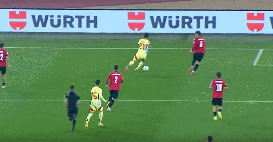 45+2’波罗右路传禁区,奥亚萨瓦尔门前迎球推远角,马马尔达什维利将球挡出