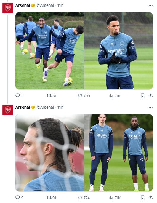 有眼尖的球迷发现,这些练习照中缺少了关键人物萨卡的身影。主帅阿尔特塔赛前透露加布里埃尔有伤在身,因此练习照中也没有加布里埃尔,但萨卡的情况无人提及,他的缺席引发了球迷们的担忧。
