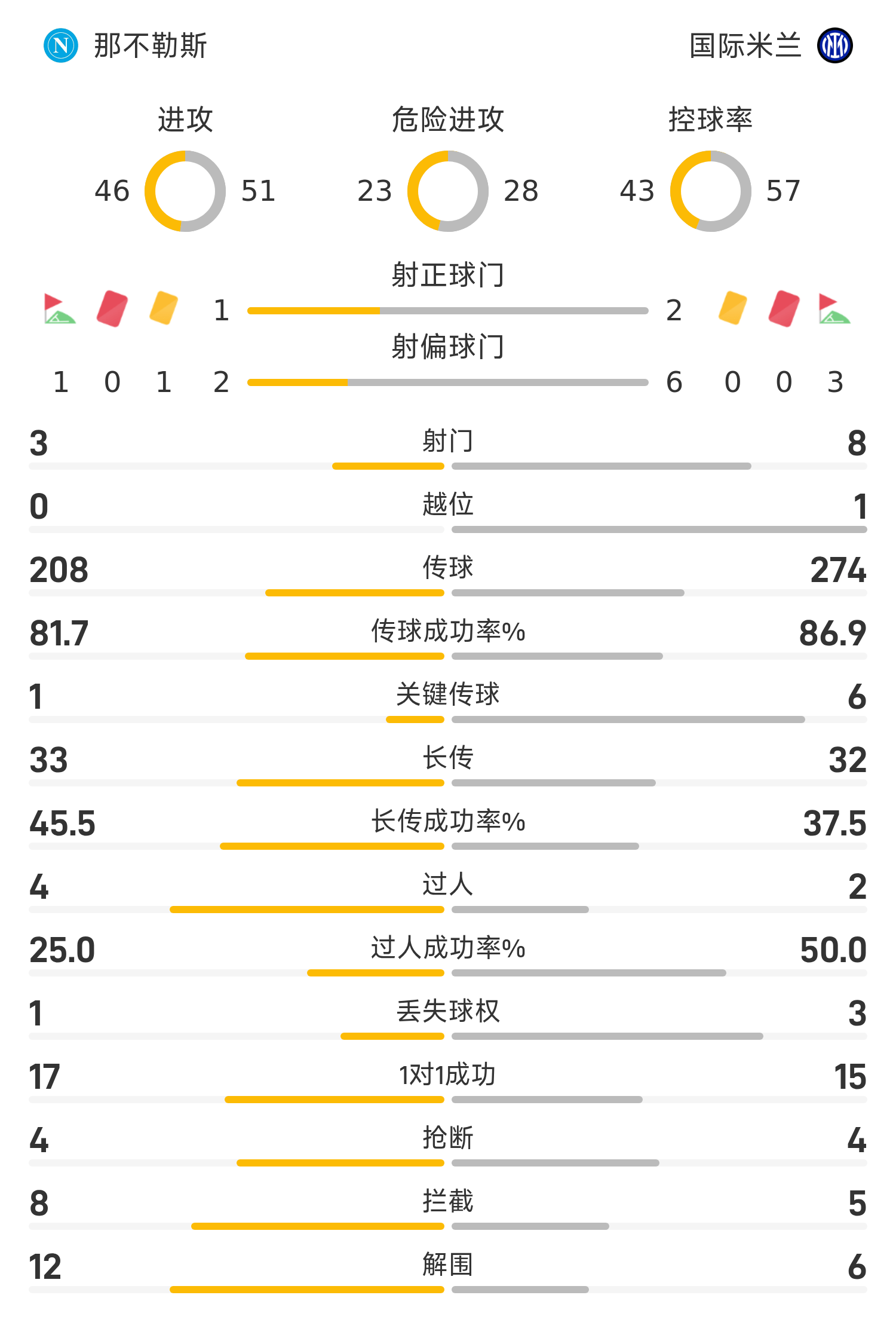 15’劳塔罗三秒区绝佳机会,打门被那不勒斯守门员扑出