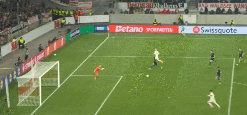 斯图加特首发阵容:33-努贝尔、7-米特尔施塔特(80’3-亨德里克斯)、24-查伯特(80’23-扎加杜)、29-杰利奇、4-瓦格诺曼(46’18-勒威林)、6-斯蒂勒、22-阿斯格昂、8-托马斯(86’10-弗赖奇)、11-汉努斯(86’27-布瓦纳尼)、30-安德烈斯、26-昂达夫