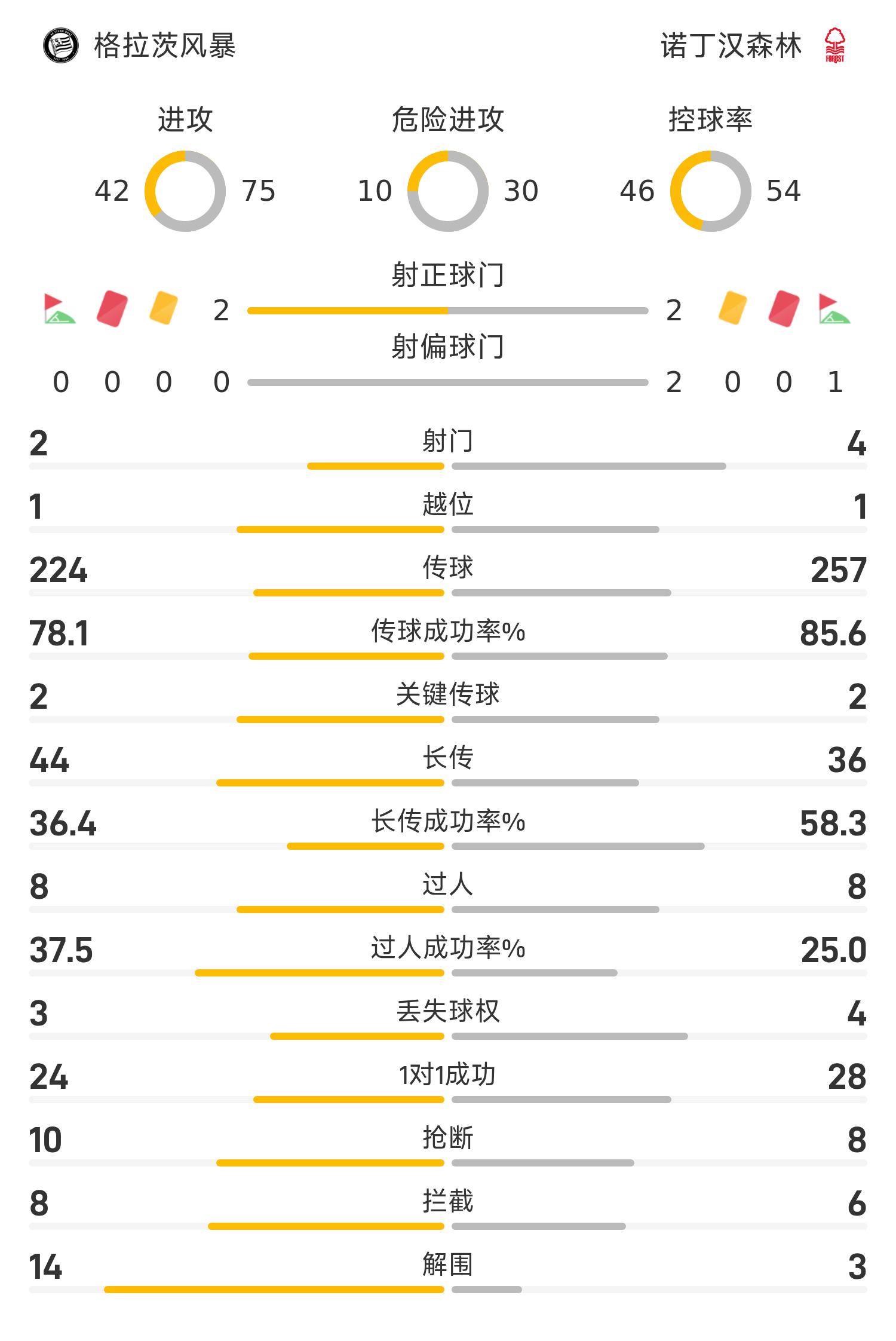 诺丁汉森林首发阵容:13-维克托、31-米伦科维奇、3-威廉姆斯、4-莫拉托、37-萨沃纳、6-桑加雷、22-耶茨、10-怀特、16-多明格斯、24-麦卡蒂、15-卡利穆恩多