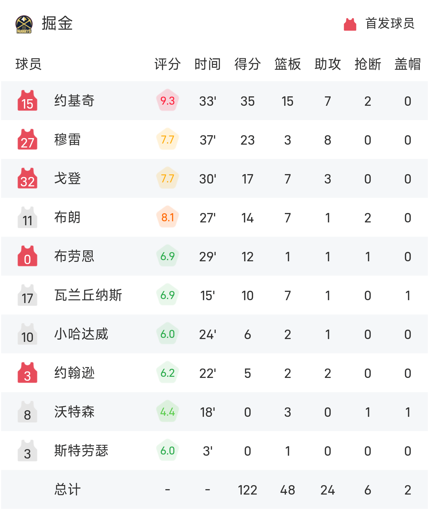 NBA战报:约基奇35分15板7助,掘金122-108击败国王