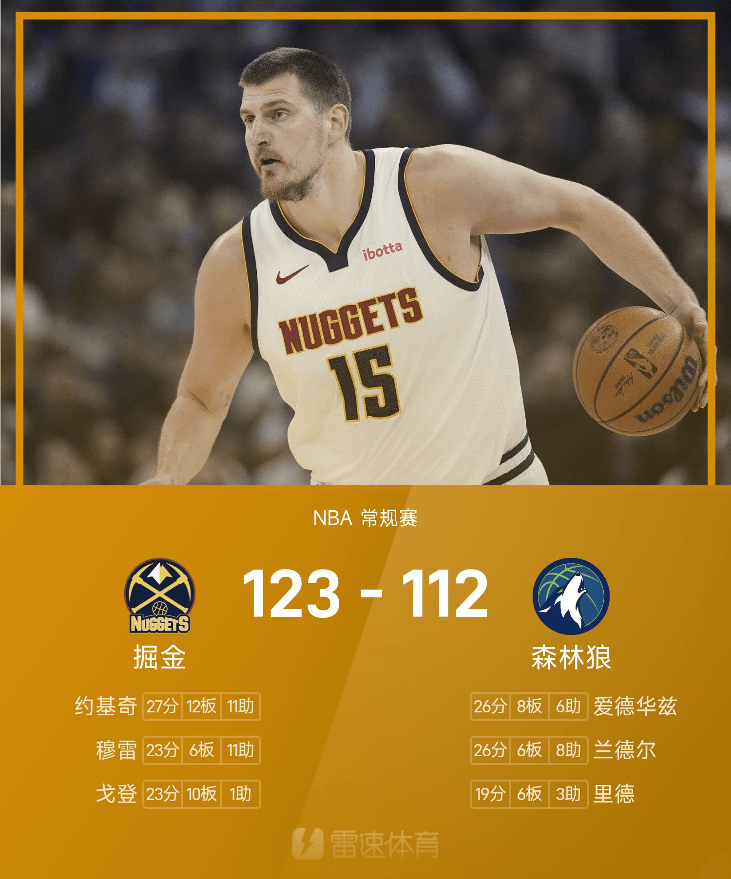 约基奇拿下27分三双带领掘金轻取森林狼。