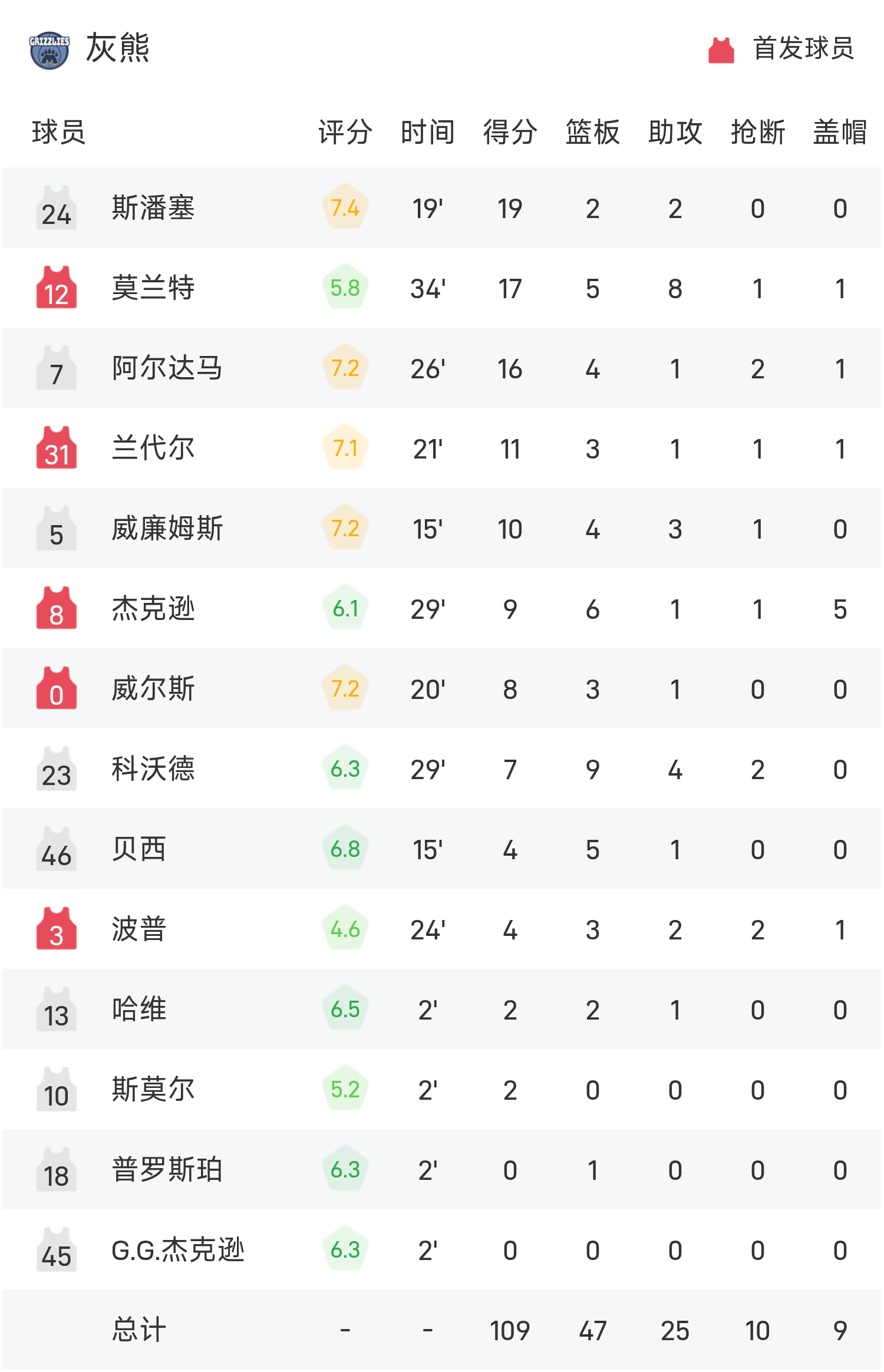 6686体育官网11月06日讯 25/26赛季NBA 常规赛,灰熊对阵火箭。双方全场战罢,灰熊109-124不敌火箭。阿门·汤普森砍下全场最高的28分10板7助,率领火箭胜利取胜。