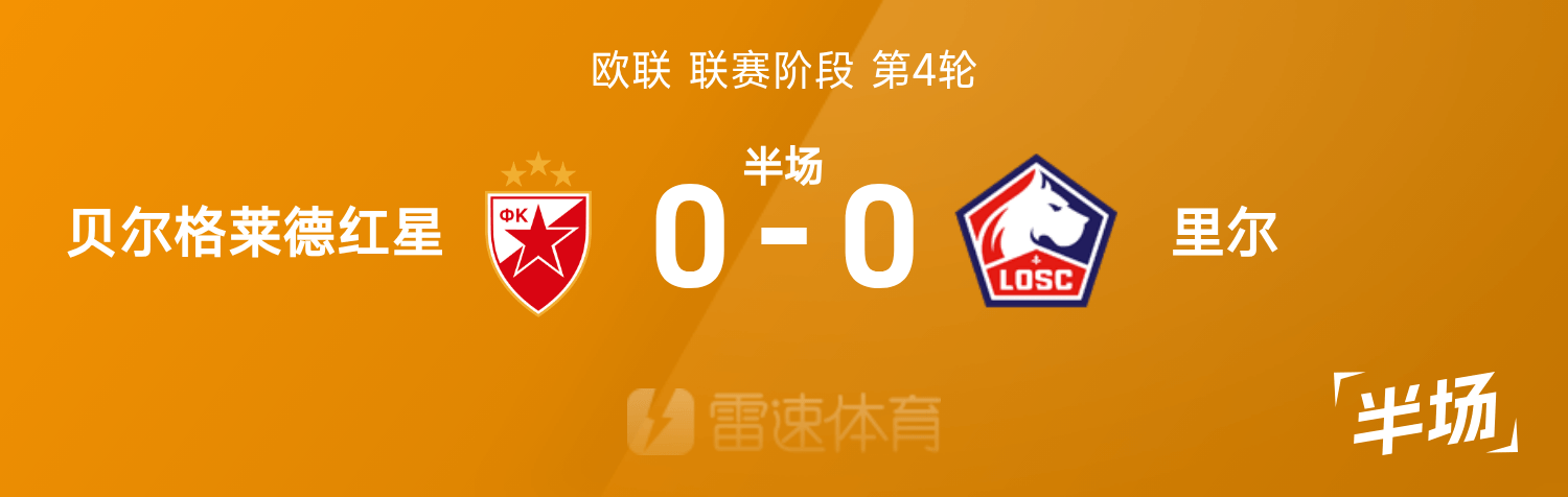 6686体育11月07日讯 25/26赛季欧联联赛事阶段第4轮,贝尔格莱德红星迎战里尔。半场战罢,双方赛果分暂为贝尔格莱德红星0-0里尔。