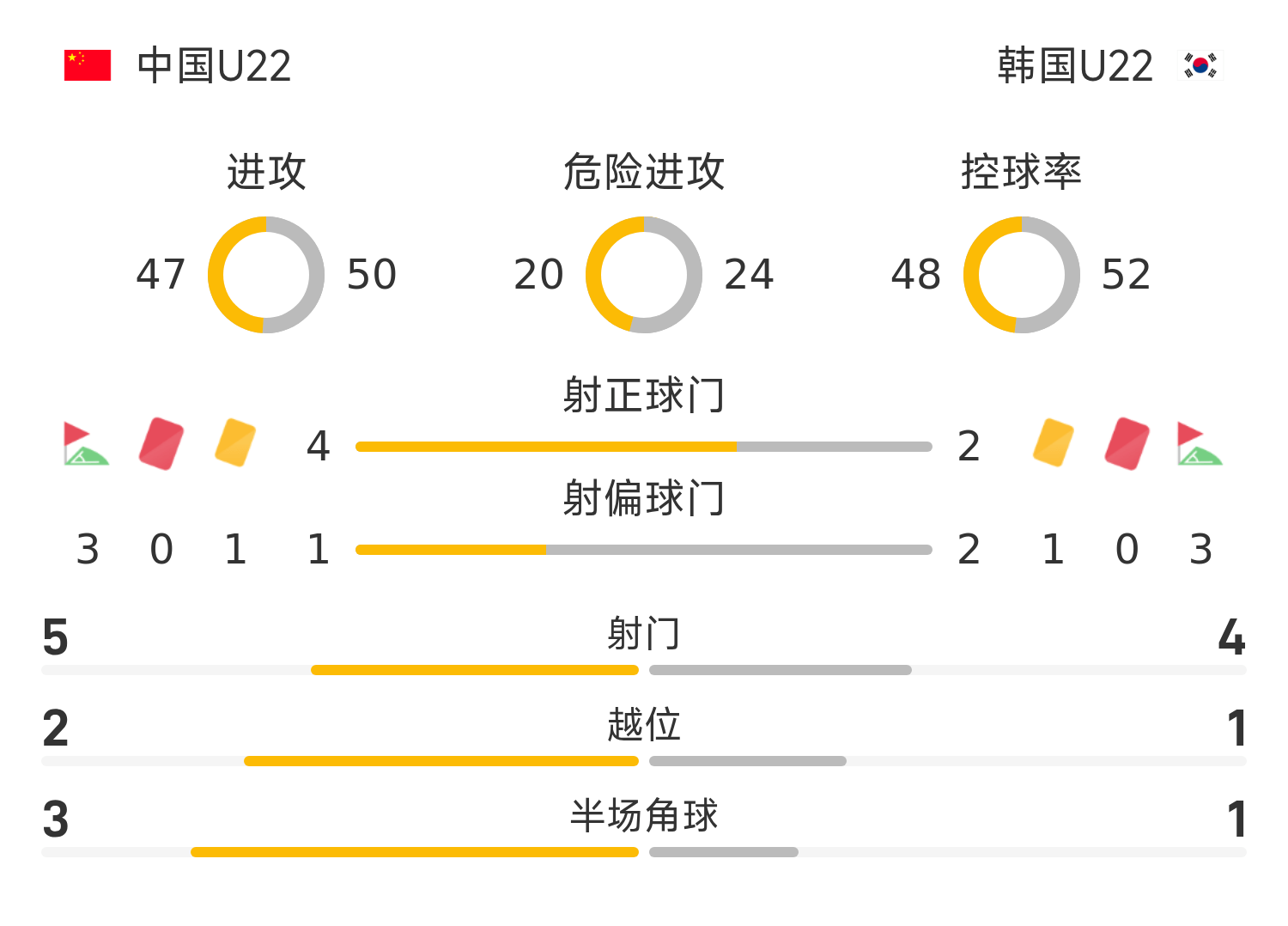 韩国U22首发阵容:1-文炫浩、24-张硕桓(82’20-朴声勋)、22-朴俊誓(82’5-赵炫泰)、4-丁升培(67’7-朴升浩)、23-信敏河、17-李建熙、2-姜民俊、16-朴贤宾、8-金东进、19-金容鹤(68’11-姜成进)、18-郑在尚(68’9-金明俊)