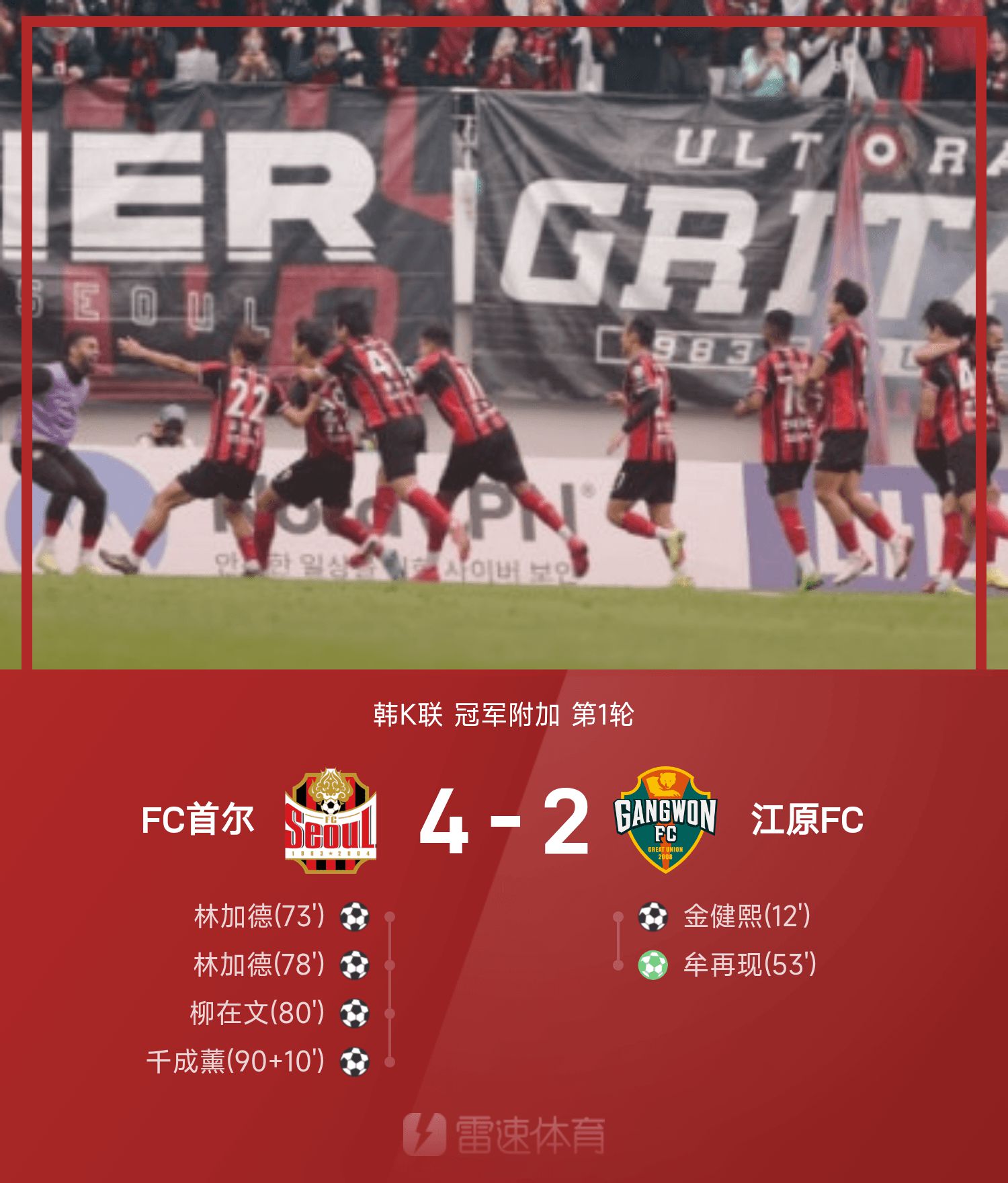 6686体育10月26日讯 25赛季韩K联冠军附加第1轮,FC首尔主队场以4-2逆转江原FC。金健熙和牟再现助江原曾取得2球优势;林加德梅开二度,柳在文和千成薰相继破门,助首尔以4-2逆转局赛果分。