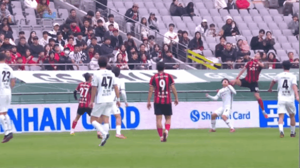 5’首尔自由球主罚到三秒区内,李胜模门前包抄慢了一步